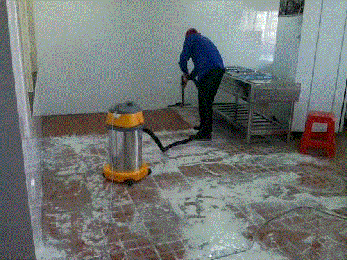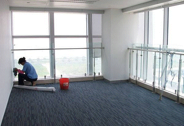 6、 地面的清洗:著重處理開荒遺留下的漆點、膠點等污漬,后用高溫蒸汽清洗機對地面進行高溫消毒,后推牽塵油(起防塵作用)。